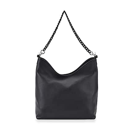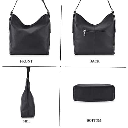 Hongkong Closeout Deal - 100% Genuine Leather Litchi Embossed Crossbody Bag - Black