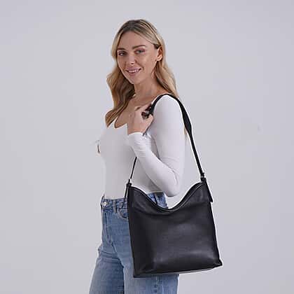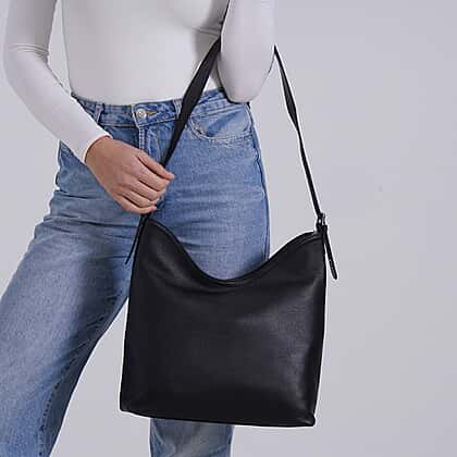 Sleek and versatile, this black genuine leather crossbody bag brings timeless elegance to any outfit. Crafted from smooth, high-quality leather, it pairs durability with modern sophistication. The interior offers two zipped and slip pockets, while the exterior pocket adds extra practicality. A strong metallic zip and subtle hardware elevate its understated charm. Designed for both workdays and evenings, this bag’s adjustable strap allows you to style it your way — crossbody or over the shoulder. A chic essential that blends fashion and function effortlessly.