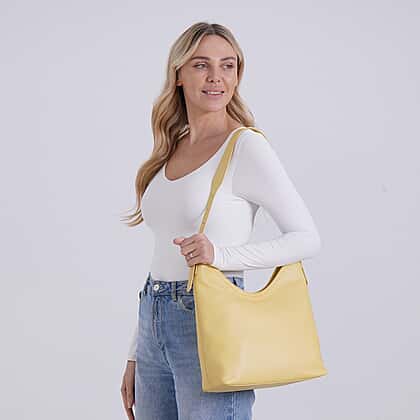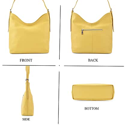 Brighten your look with this yellow genuine leather crossbody bag, a vibrant yet elegant piece made for confident, modern women. The smooth genuine leather exterior features subtle grain detailing, giving it texture and depth. Inside, neatly placed zipped and slip pockets help keep everything in order, while a rear zipped pocket adds easy access. The metallic zip fastening and hardware provide durability and a polished finish. Whether you’re heading to brunch or a weekend getaway, this cheerful yet refined bag is the perfect companion.