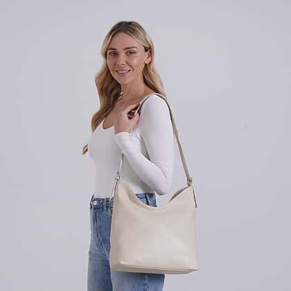 Fresh and modern, this white genuine leather crossbody bag offers refined elegance for any occasion. The soft leather exterior, finished with a gentle sheen, feels beautifully smooth to the touch. Spacious yet structured, it features interior zipped and slip pockets along with a handy external zipped pocket for essentials. Accented with metallic hardware and a sturdy zip fastening, it’s perfect for day-to-night wear. With an adjustable strap for a tailored fit, it combines everyday ease with timeless sophistication — a must-have addition to your wardrobe.