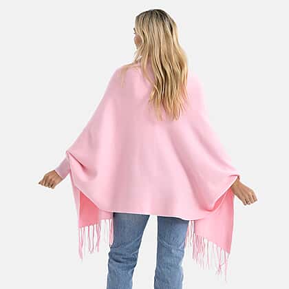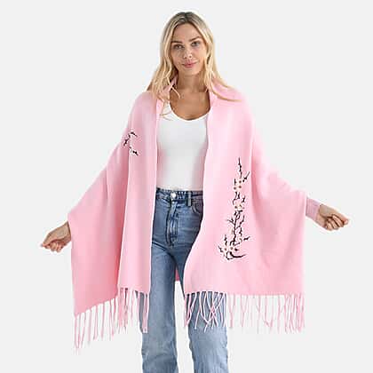 - Maisi Embroidered Tassel Batwing Sleeve Relaxed Drape Cape (One Size) - Pink