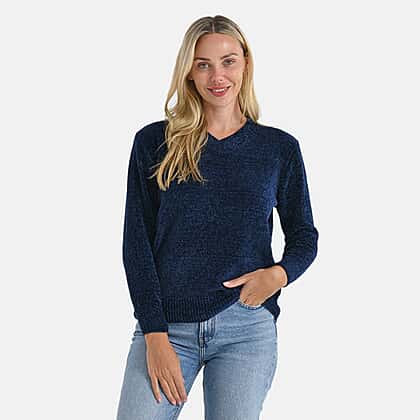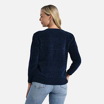 The blue Maisi Chenille Patterned Jumper makes for a wardrobe essential. It comes with a V-neckline and long-sleeves which makes it extremely layering-friendly. Made with a fabric blend of chenille, polyester, and elastine, this jumper feels soft, has a plush feel, and offers just the right amount of stretch for easy movement. The best part about this cardigan is that it's always in style and can make dressing up for winters a breeze.
