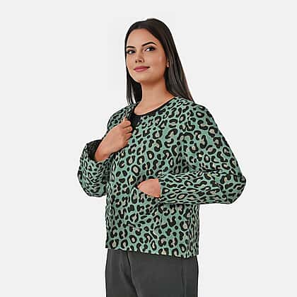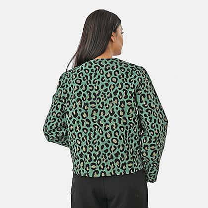 THE SHOWSTOPPER - Designer Inspired - Maisi Leopard Print Cotton Jacquard Jacket (Size - S-M) - Teal