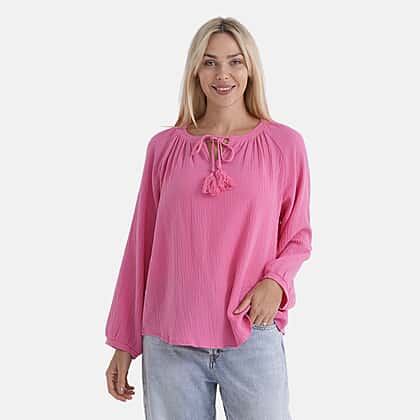 - Maisi 100% Cotton Tie-Neck Top (Size 12 to 14) - Pink