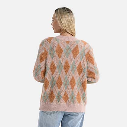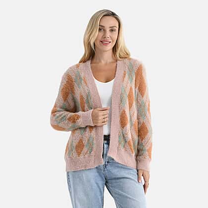 - Maisi Knitted Argyle Cozy Cardigan (One Size 8 to 20) - Pink - Green