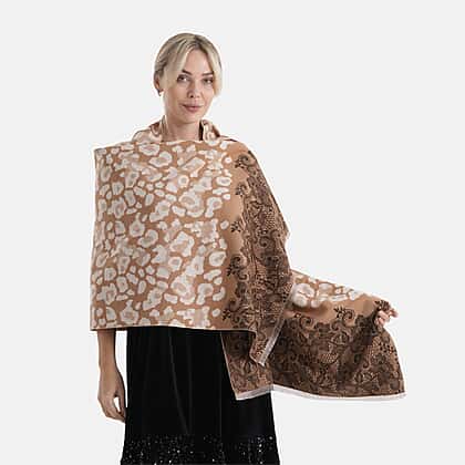 - Maisi Leopard Printed Colour-Block Tassel Scarf (180 x 75Cm) - Beige, Off-White - Brown