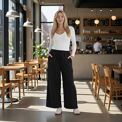 - Maisi Lightweight Cargo Trousers with Elasticated Waist (Size - M) - Black