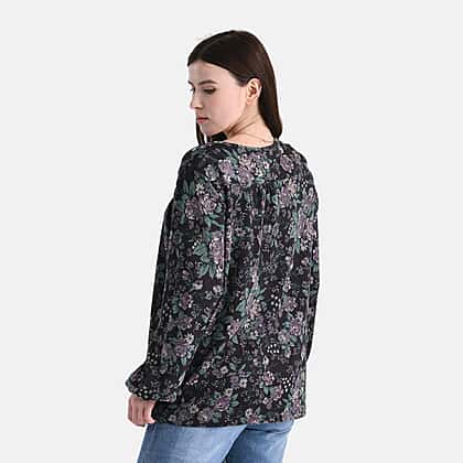 When it comes to finding a go-to top, you can't go wrong with something like black floral printed one. It's elegant and features billowy sleeves that help to add a retro flair to your look. Made with a blend of polyester, elastone, and viscose, this top feels lightweight on the skin. It has an airy, flowy feel and ensures brethability. Striking a perfect balance between practicality and personality, this top can be worn season after season.Style it with a vintage wash denim or style it with a maxi skirt to complete your look.
