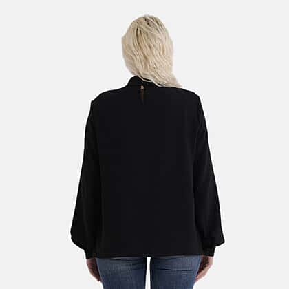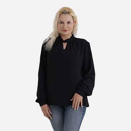 - Maisi Long-Sleeved Blouse With Keyhole Neck Detail (Size 18 To 20) - Black