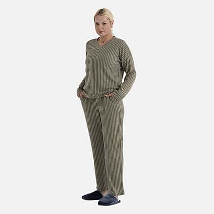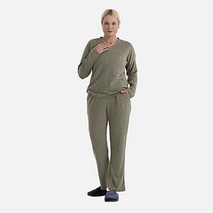 - Maisi Two-Piece Relaxed Fit Ribbed Loungewear Set (Size 12 To 14) - Green