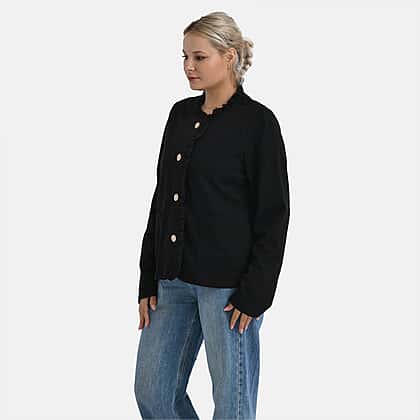 THE LUXE LAYER COLLECTION- -Maisi Frill Trim Gold Button Suede Feel Jacket (Size M, 12 to 14) - Black