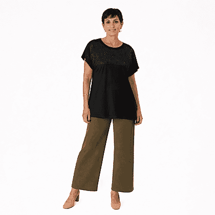 DIAMANTE COLLECTION - - Maisi Jeweled Supersoft Short-Sleeved Top (One Size 8 TO 22) - Black