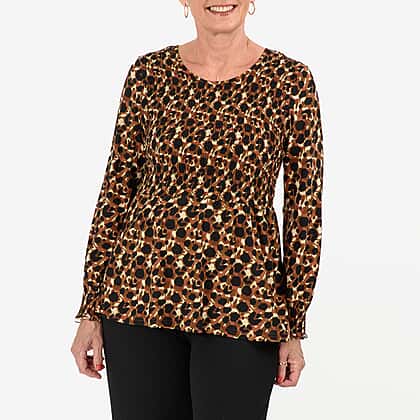 Go out in style with black Maisi Peplum Top that features a flattering peplum style that can help bring attention to your waist. Thus, it makes an ideal choice for individuals who want to create the illusion of an hourglass figure. Pair it with wide-legged jeans or trousers to strike a balanced look. It features full-length sleeves with cinched details at the end which helps to give it a structured look. The top features retro polka dot prints in white, lilac, and blush tones which helps to add a peppy playful touch to the design. It makes for a true wardrobe essential for those who adore fluid silhouettes.Pair it with wide-legged jeans or trousers to strike a balanced look.