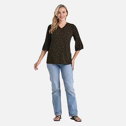 - Maisi Leopard Print Frill Quarter Sleeve Top (Size L) - Green
