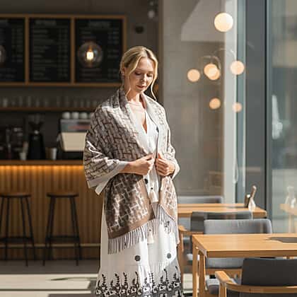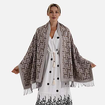 - Maisi Geometric Print Tassel Scarf (65 x 180cm) - Beige