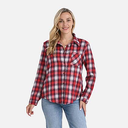 If you are looking for shirts that can work as building blocks for your wardrobe, then this checkered pattern red and white shirt makes for a great pick. It comes with full-length sleeves and makes for a classic style. Made with a blend of viscose, polyester, and elastine, this button-up shirt feels lightweight on the skin. It is also thin enough to be layered underneath a cardigan or a denim jacket. This red and white shirt features a thin band collar and can be worn for both work and leisure.