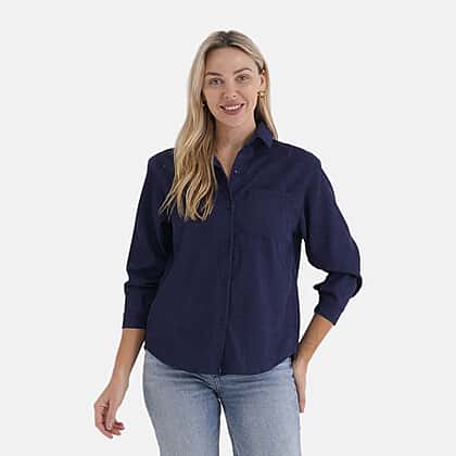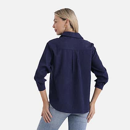 - Maisi Solid Color Relax-Fit Shirt (Size L) - Navy Blue