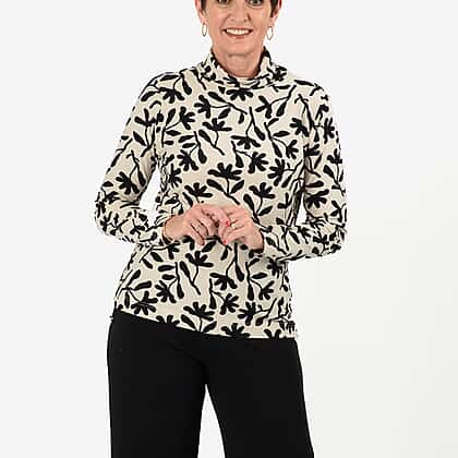 - Maisi Soft Touch Roll Neck Top (Size XL) - Off White - Black