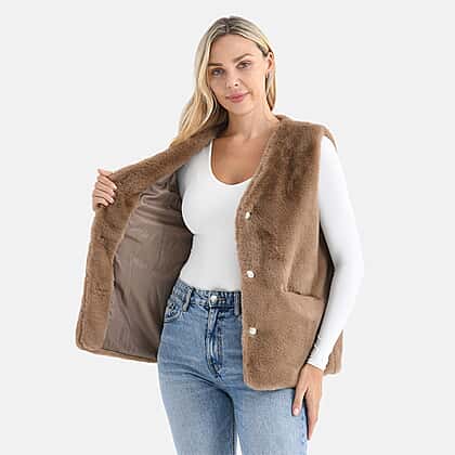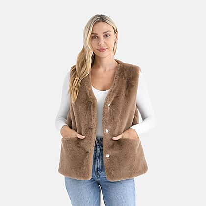 - Maisi Faux Fur Half-Sleeve Luxe Gilet (Size S-M) - Brown