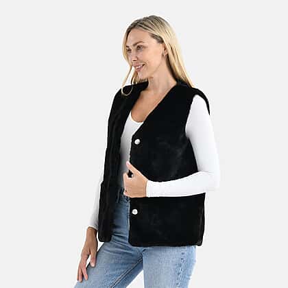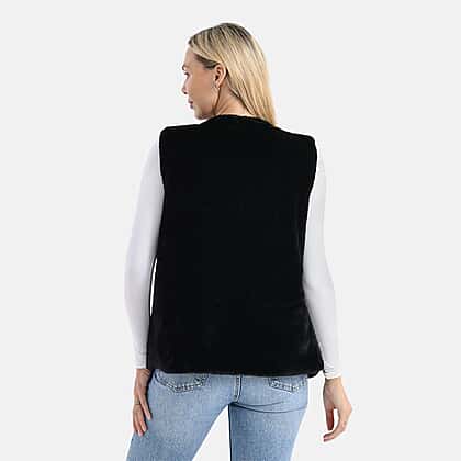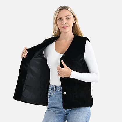 - Maisi Faux Fur Half-Sleeve Luxe Gilet Coat with Button Detail (Size S-M) - Black