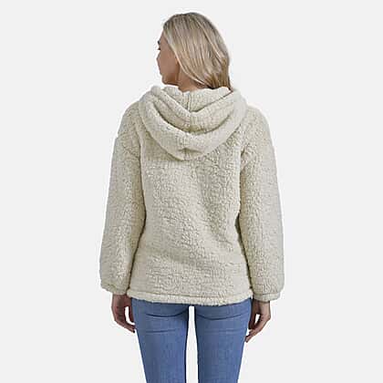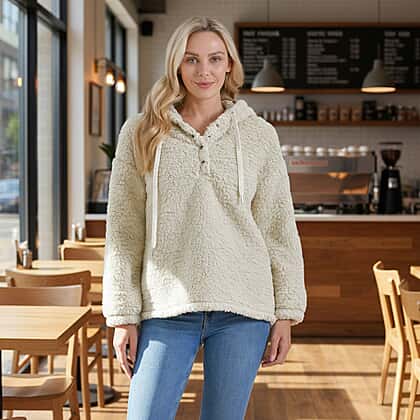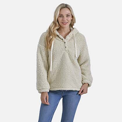 - Maisi Plush Hoodie with Button Neck (Size M) - Beige