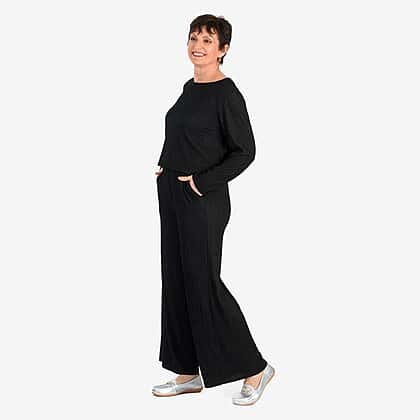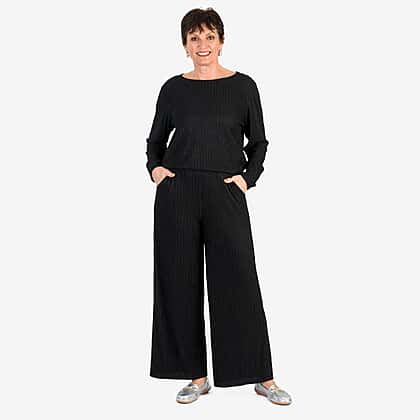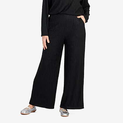 -Maisi Textured Wide Leg Trousers (Size M) - Black