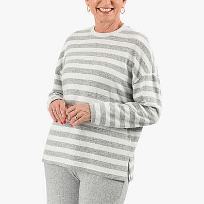 - Maisi Cashmere-Feel Stripe Top (Size XXL) - Grey - White