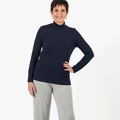 Find warmth and simplicity in this & Maisi brushed marl turtle neck top in classic navy. The brushed marl fabric, made from 95% polyester and 5% elastane, feels soft against the skin while offering stretch for all-day comfort. Its turtle neck design is softly fitted and gently rolled, creating an easy, polished look. With long sleeves and a straight hemline, this top sits beautifully whether tucked in or worn loose. Smart yet comfortable, it’s the kind of wardrobe essential that looks just as good at home as it does out and about.