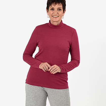 Wrap yourself in the cosy comfort of this & Maisi brushed marl turtle neck top in rich plum. Made from a soft blend of 95% polyester and 5% elastane, it offers gentle stretch and a beautifully smooth brushed texture. The rolled turtle neck sits comfortably high, giving warmth without bulk, while the long sleeves and straight hemline create a clean, flattering look. Ideal for layering or wearing on its own, this versatile piece adds a touch of colour and comfort to chilly days — the perfect blend of style and ease for everyday dressing.