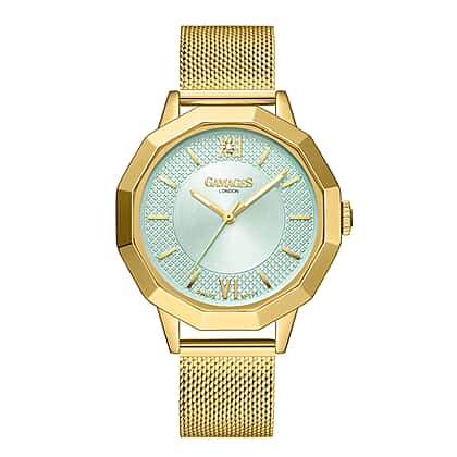 Gamages of London Lotus Diamond Swiss Quartz Movement Seychelles Blue Dial Water Resistant Ladies Watch with Mesh Bracelet in Gold Tone
