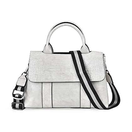 Sumptuous Quality 100% Genuine Exquisite Leather Croc Embossed Crossbody Bag with 2 Long Shoulder Strap - White