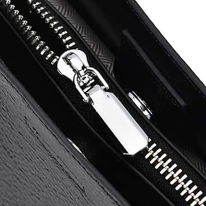 Genuine Leather Patterned Crossbody Bag with Top Handle - Black