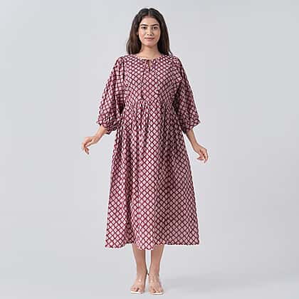 This beautifully crafted La Marey block dress is a perfect blend of style and comfort, designed to make you feel effortlessly stylish. This midi-length A-line dress features a round neck and three-quarter sleeves, providing a timeless look suitable for any occasion. Crafted from soft cotton, it ensures all-day comfort while the side pockets add a practical touch. The tie-up neck detail adds sophistication, making it a versatile piece for your wardrobe. Ideal for both casual and formal settings, this dress is a must-have for every fashion-forward individual.