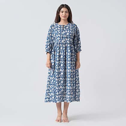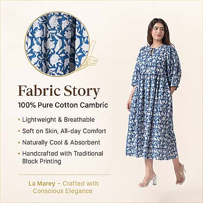This beautifully crafted La Marey block dress is a perfect blend of style and comfort, designed to make you feel effortlessly stylish. This midi-length A-line dress features a round neck and three-quarter sleeves, providing a timeless look suitable for any occasion. Crafted from soft cotton, it ensures all-day comfort while the side pockets add a practical touch. The tie-up neck detail adds sophistication, making it a versatile piece for your wardrobe. Ideal for both casual and formal settings, this dress is a must-have for every fashion-forward individual.
