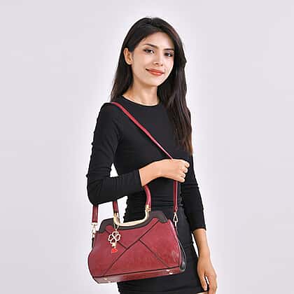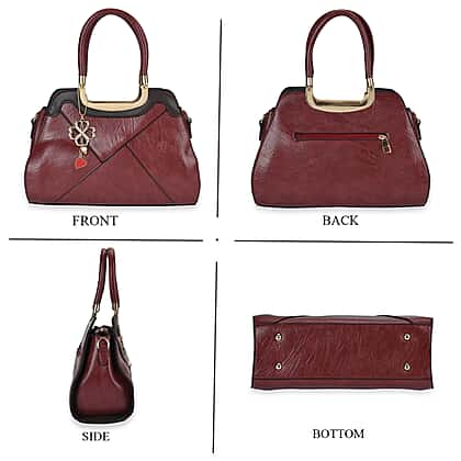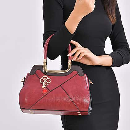 PU Patterned Crossbody Bag (Size 31x13x21 cm) - Burgundy & Black