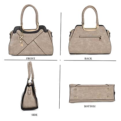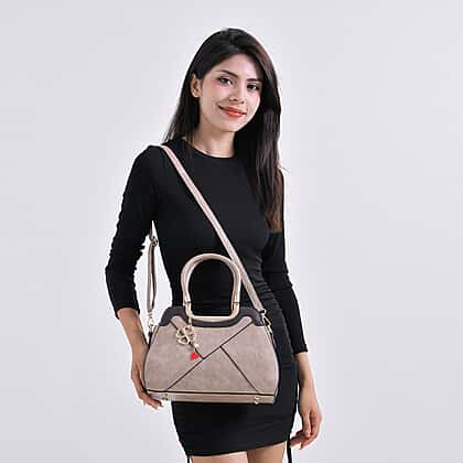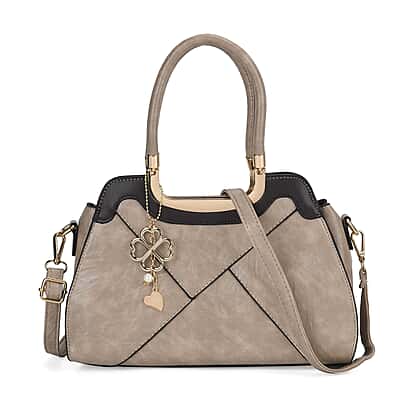 Leatherette Crossbody Bag with Four-Leaf Clover Hanging - Khaki