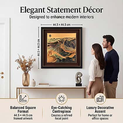 The radiant 24K gold foil finish enhances every detail of the Great Wall’s winding structure, creating a striking visual effect that reflects light beautifully. The balanced square format and premium frame make it a sophisticated centrepiece for living rooms, offices, hallways, or study spaces.