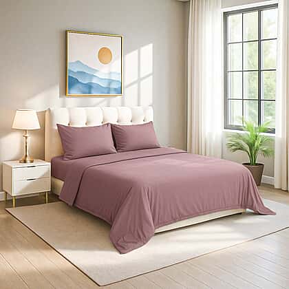 Make a statement in your bedroom with this mauve bamboo bedding set, blending understated elegance with exceptional comfort. The 4-piece set includes a duvet cover(200x200cm), fitted sheet (135x190+32cm), and two matching pillowcases (50x75cm), all crafted from 100% bamboo viscose. The rich mauve hue brings a touch of refined colour to your bedding without overwhelming your space. The 300 thread count fabric is ultra-soft, breathable, and temperature regulating, ensuring a restful sleep night after night. Bamboo is known for its natural hypoallergenic and antibacterial properties, making this set ideal for wellness-focused comfort.