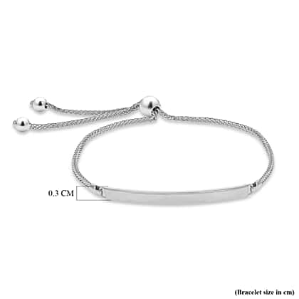 9K White Gold 3mm x 34.5mm Spiga Chain Adjustable Slider ID Bracelet 9.5 Inch