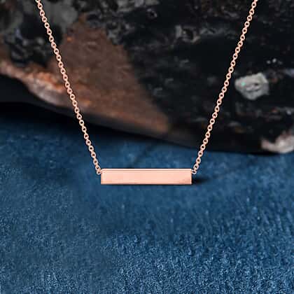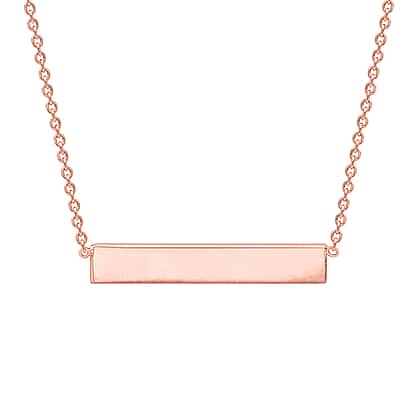 9K Rose Gold 22mm x 3mm Horizontal Bar Adjustable Necklace 16 Inch to 17 Inch