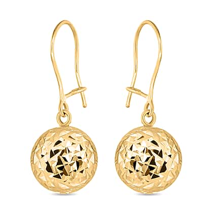 9K Yellow Gold 10MM Diamond Cut Ball 10MM X 24MM Drop Earrings 1.3 grams