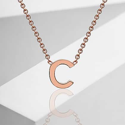9K Rose Gold 4mm x 5mm 'C' Initial Adjustable Necklace 15 - 17 Inch