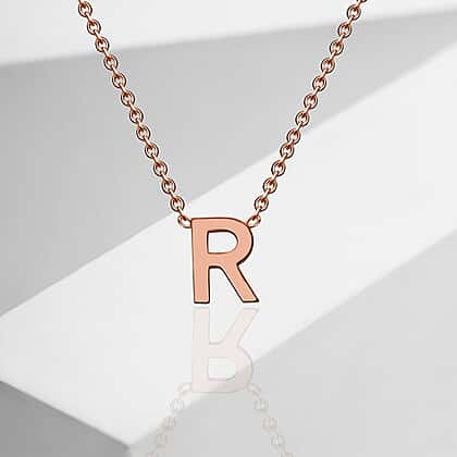 9K Rose Gold 3.5mm x 5mm 'R' Initial Adjustable Necklace 15 - 17 Inch