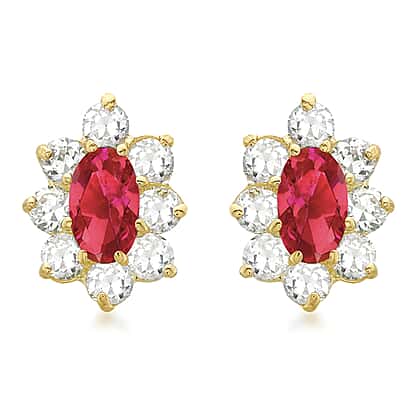 • Floral studs set with a brilliant red cubic zirconia (3mmX5mm)