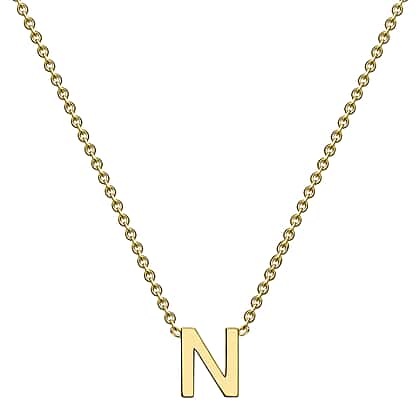 9K Yellow Gold 4mm X 5mm 'N' Initial Adjustable Necklace 15 to 17 Inch
