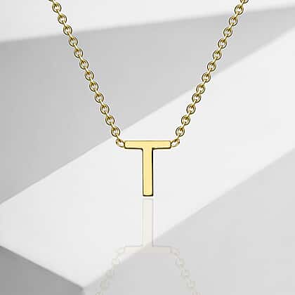 9K Yellow Gold 4mm X 5mm 'T' Initial Adjustable Necklace 15 to 17 Inch