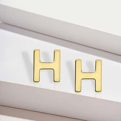 9K Yellow Gold 4mm X 5mm 'H' Initial Stud Earrings