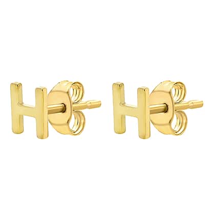 9K Yellow Gold 4mm X 5mm H Initial Stud Earrings