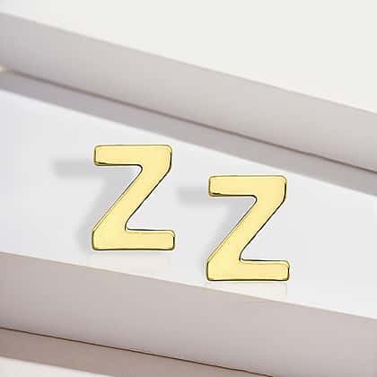 9K Yellow Gold 4mm X 5mm 'Z' Initial Stud Earrings