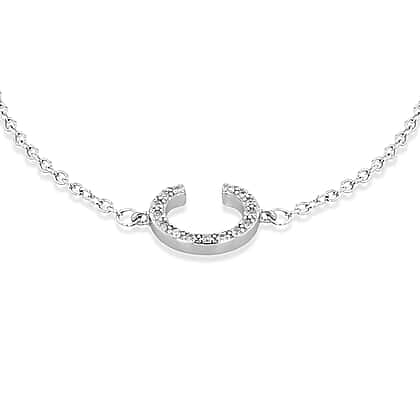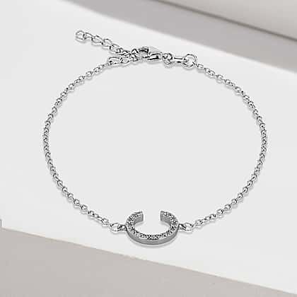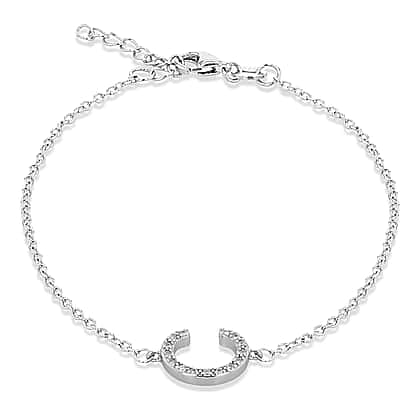 C Initial Bracelet 7.5 Inch in Sterling Silver Rhodium Plated Cubic Zirconia 11mm x 9mm